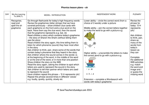 Sh Phonics Lesson Plan Worksheets And Activities By
