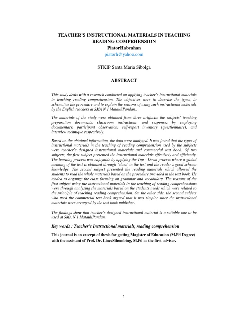 Pdf The Use Of Authentic Materials In The Teaching Of Reading