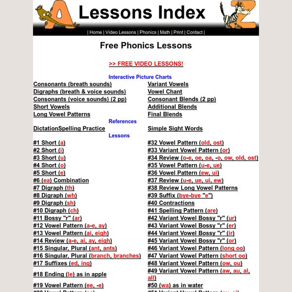 Listing a complete index to all phonetic lessons and interactive charts. Short vowel long vowel games and r controlled words games.