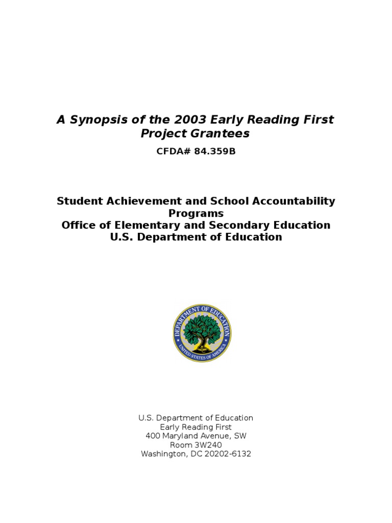 The Early Reading First Program Cfda A And B Center For Faith