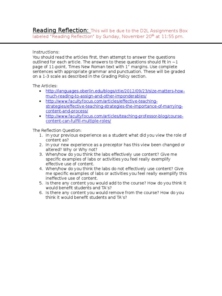 Reading Reflection Critical Thinking Lesson Plan